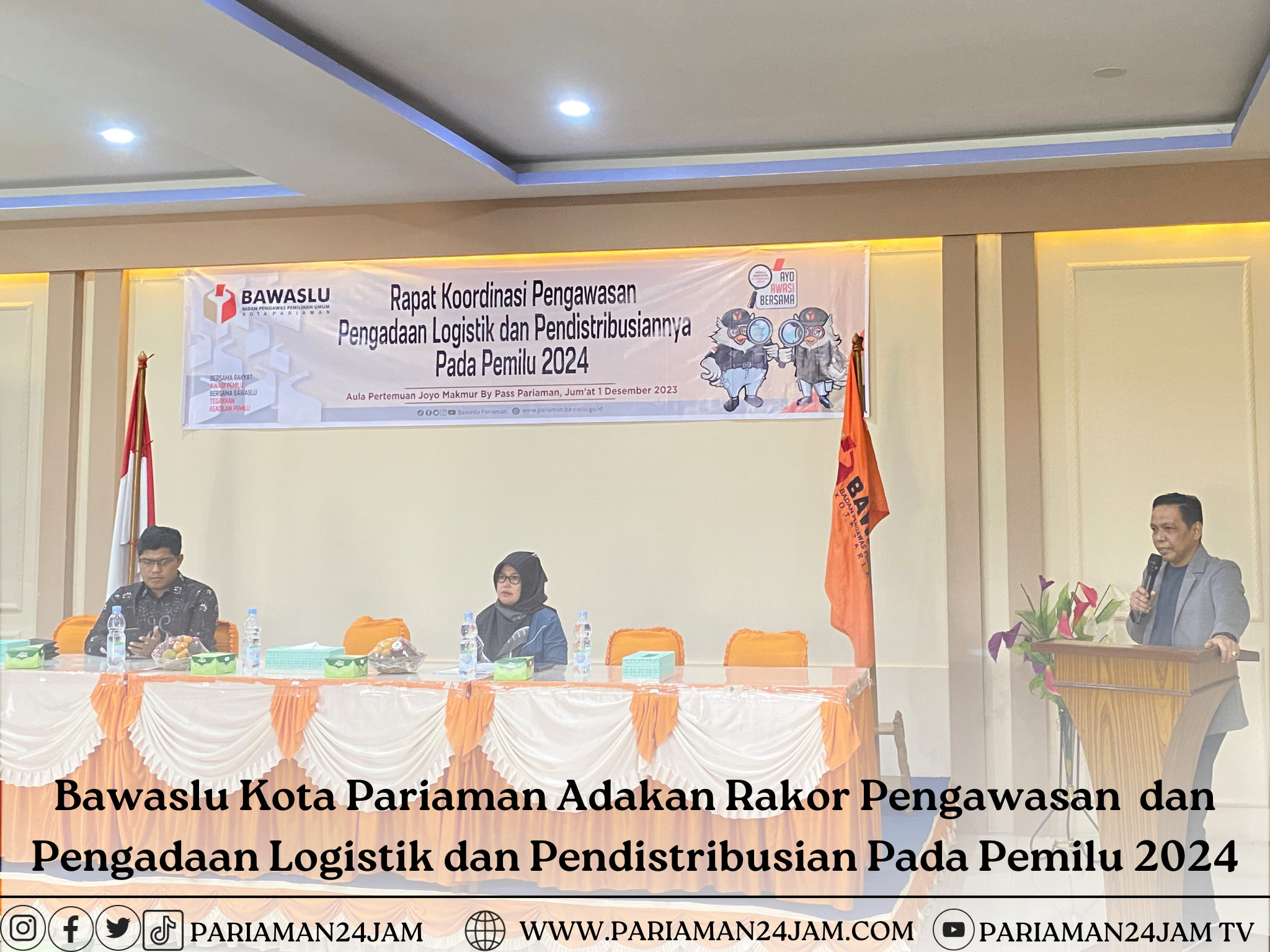 Pariaman24jam – Bawaslu Kota Pariaman menggelar Rapat koordinasi pengawasan dan pengadaan logistik dan pendistribusian pada pemilu 2024 bertempat di Aula Pertemuan Joyo Makmur By Pass Pariaman. Jum’at(1/12/2023).