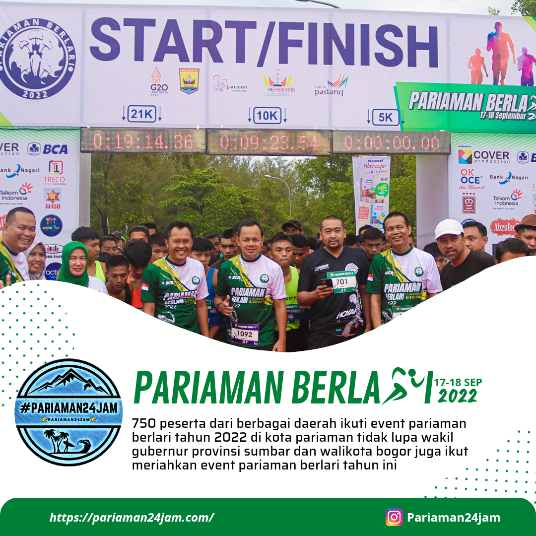 Peserta yang diikuti ±750 peserta dari berbagai daerah di indonesia, dan hadir juga Anggota DPR RI, Wakil Gubernur Provinsi Sumbar, Walikota Bogor, kepala OPD dan Forkopimda dalam ajang pariaman berlari tahun 2022 ini.