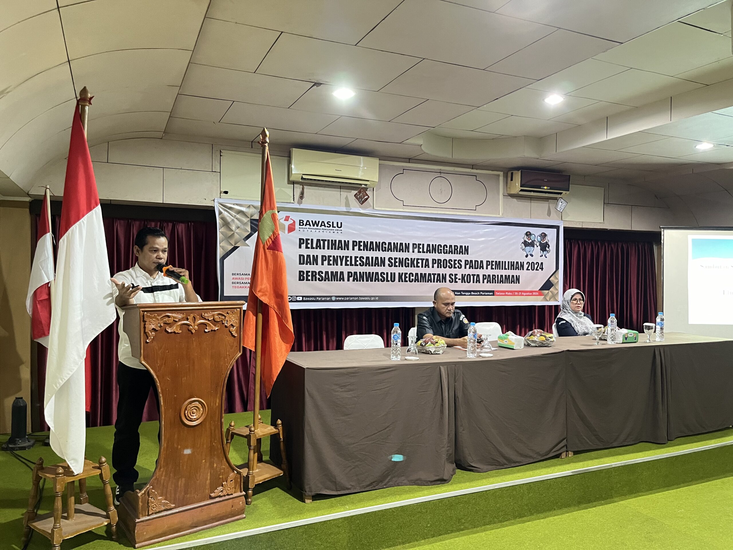 PARIAMAN24JAM – Bawaslu Kota Pariaman menggelar Pelatihan Penanganan Pelanggaran dan Penyelesaian Sengketa Proses pada Pemilihan Serentak Tahun 2024 bersama Panwaslu Kecamatan se-Kota Pariaman. Selasa, 20-21 Agustus 2024, di Hotel Nan Tongga Kota Pariaman.
