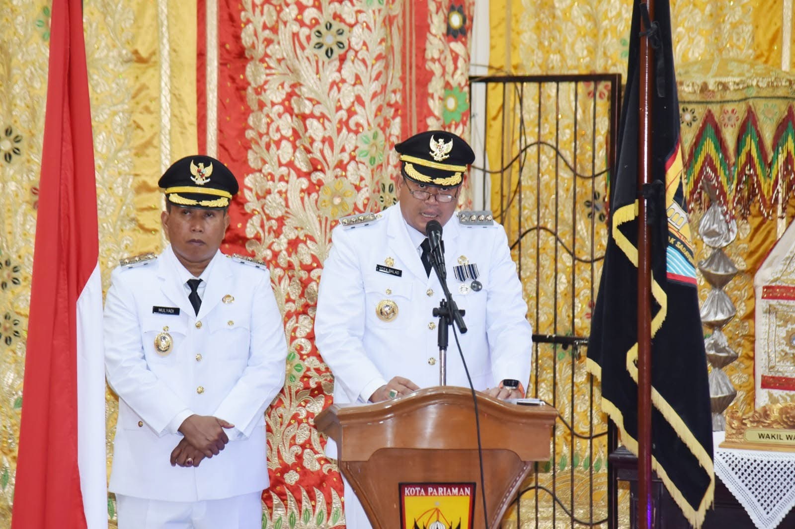 Usai pelaksanaan prosesi Serah Terima Jabatan (Sertijab) di Aula Balaikota Pariaman, Wali Kota Pariaman Yota Balad dan Wakil Wali Kota Pariaman Mulyadi sampaikan visi misi dan program unggulan lima tahun kedepan dalam Rapat Paripurna yang digelar oleh Dewan Perwakilan Rakyat Daerah (DPRD) Kota Pariaman di Ruang Sidang DPRD Kota Pariaman, Senin (3/3/2025).
